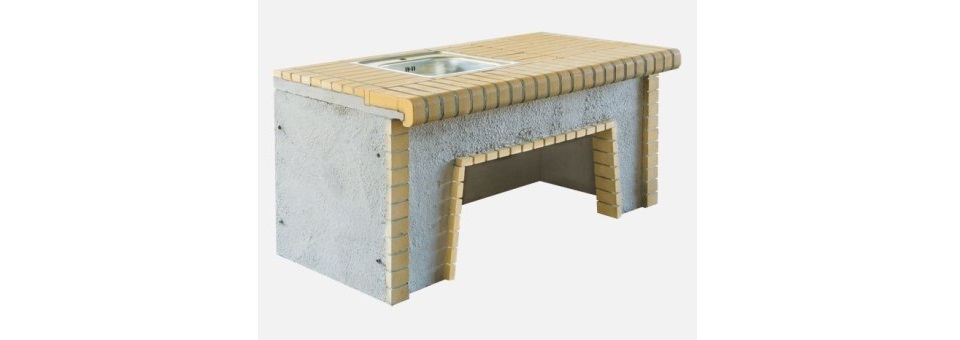 The bench classic continuos for barbecues with sink is the perfect choice combining countertop with sink and large surface of firebricks. Also comes in 5 colors, yellow, red, black, brown and white to match the grill or oven. It comes in two sizes,